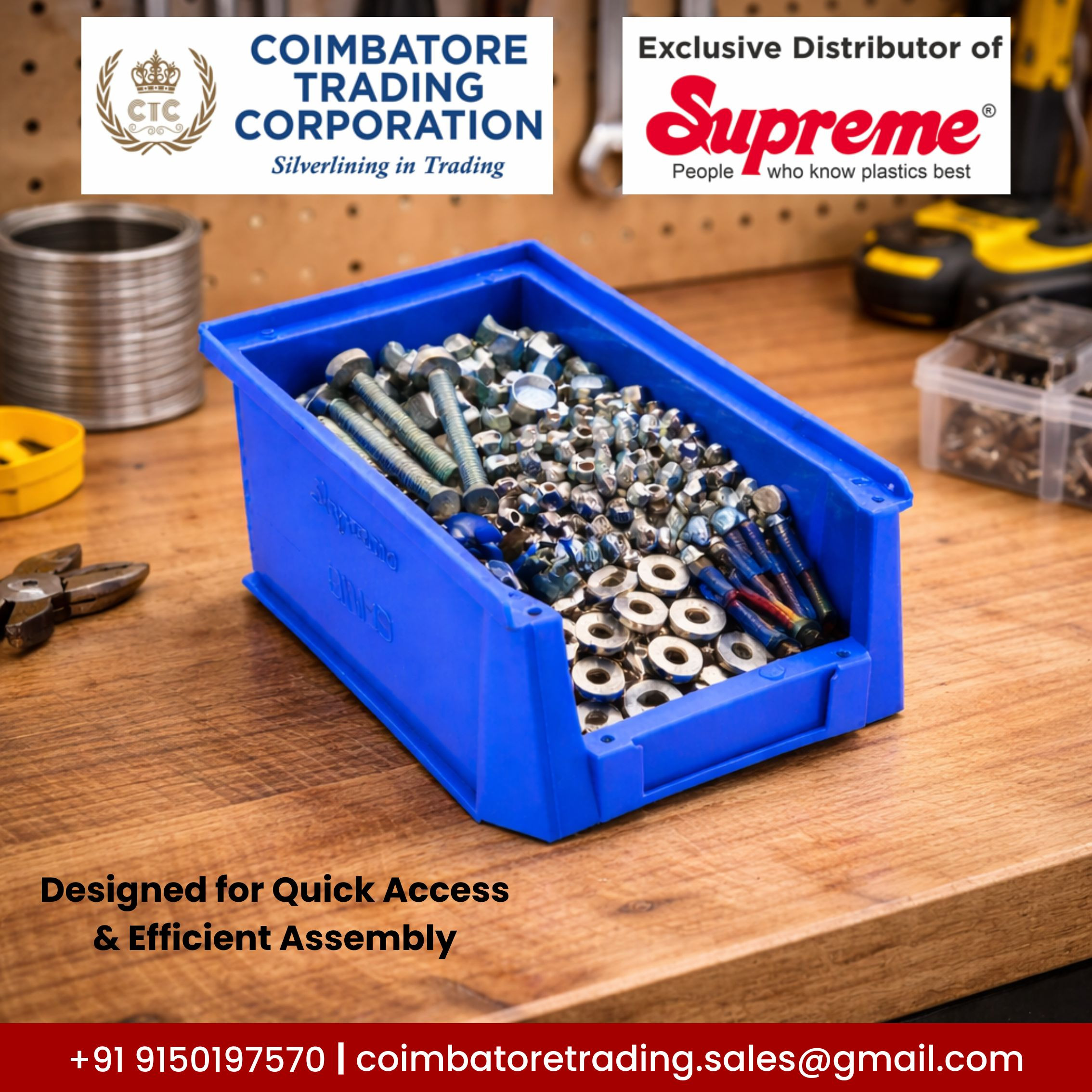 Coimbatore Trading Corporation is the authorized distributor of “Supreme” plastic pallets , plastic crates, plastic dustbins and plastic Stacking bins in coimbatore, Tamilnadu & Kerala.