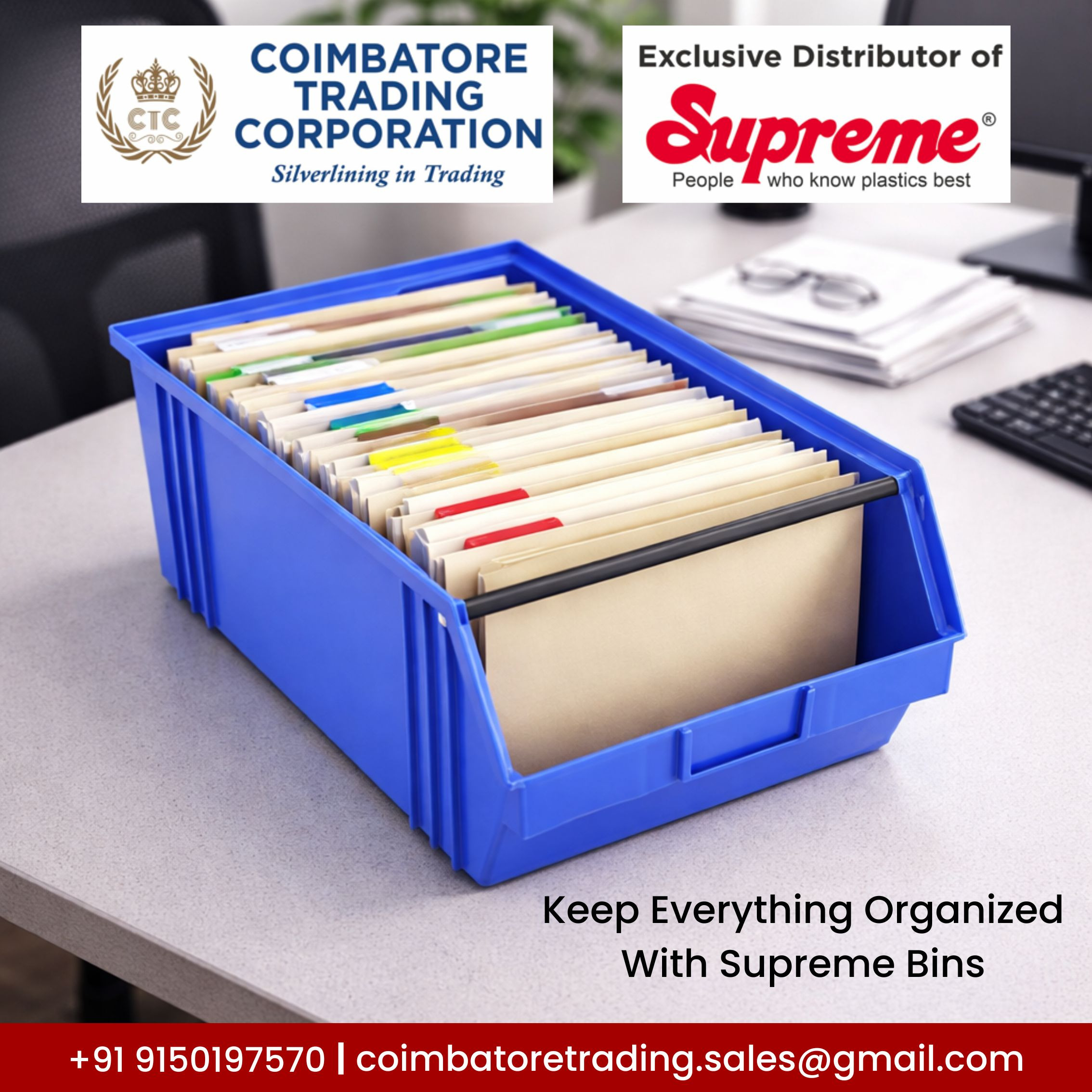 Coimbatore Trading Corporation is the authorized distributor of “Supreme” plastic pallets , plastic crates, plastic dustbins and plastic Stacking bins in coimbatore, Tamilnadu & Kerala